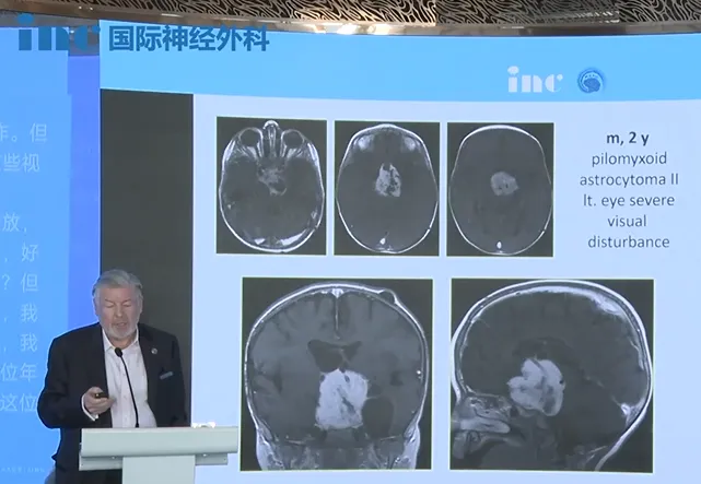 “各位同仁,大家下午好。能再次与各位朋友相聚,我感到非常荣幸和喜悦。在此,我也要向INC团队的精心安排表达感谢!过去几年,我分享的主题多围绕脑干相关病变,如血管病或胶质瘤。而今天,我选择了一个不同的方向——丘脑胶质瘤,这一领域同样充满挑战。目前,该病变的主要治疗方式以化疗为主,有时结合放疗。但是,为何不更积极地考虑根治性手术呢?早期神经外科干预,特别是对毛细胞型星形细胞瘤,效果可能非常好。即使面对弥漫性胶质瘤,肿瘤减容手术也具有一定价值。例如,当一侧视神经已完全被肿瘤浸润,我们仍可能通过对侧视神经的挽救,帮助患者保留视力……”